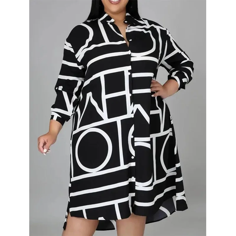 High Quality Cotton Fall Winter Midi Shirt Dress Factory Wholesale Custom Designer Loose Oversize Plus Size Dress